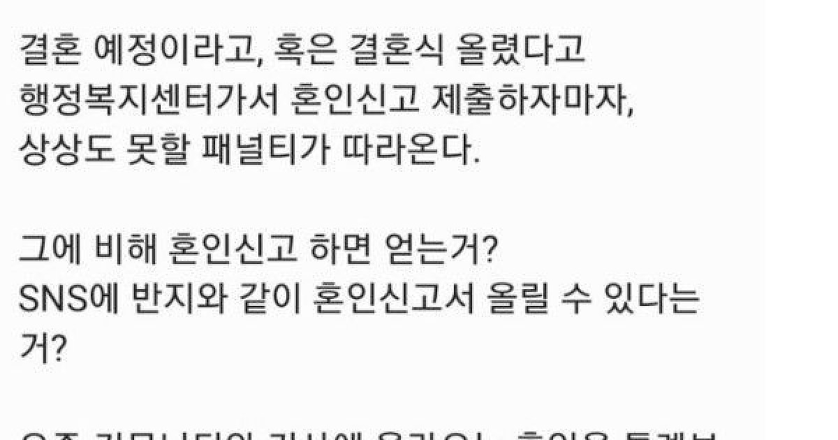 혼인신고 해버리면 생기는 불이익ㄷㄷ