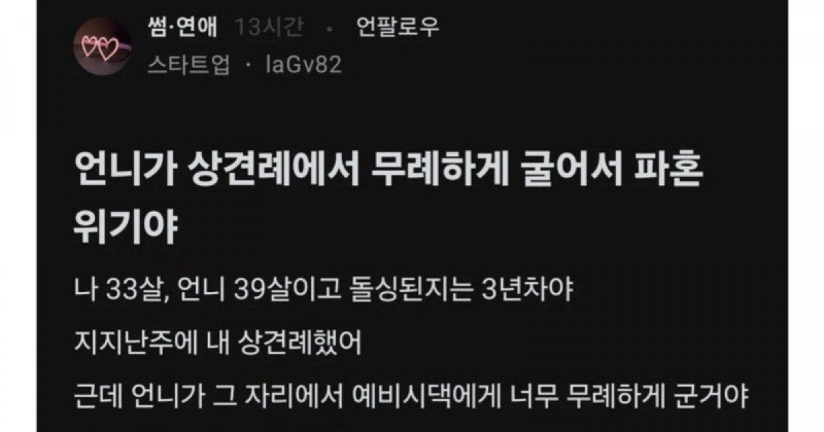 언니가 상견례에서 무례하게 굴어서 파혼 위기야