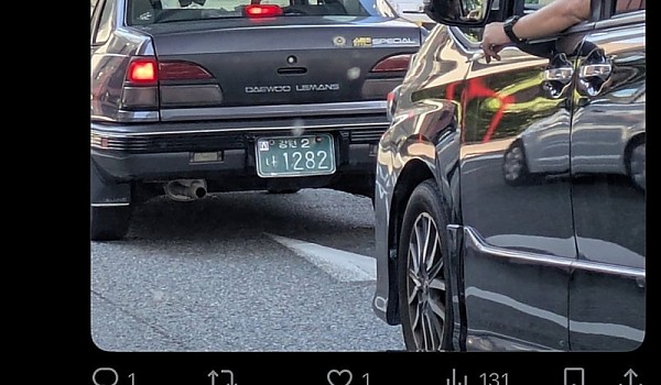 일본 도로에서 본 한국 자동차
