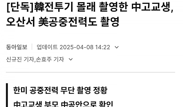 [단독]韓전투기 몰래 촬영한 中고교생, 오산서 美공중전력도 촬영