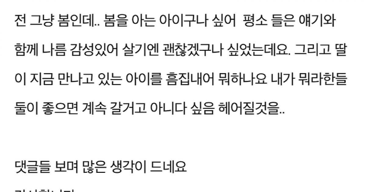 딸의 남친이 냉이를 캐와서 선물해줬대요