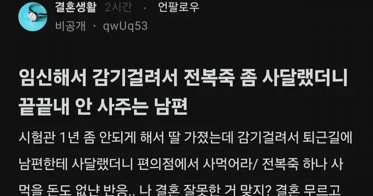 아픈 임신한 아내의 부탁 거절하는 남편