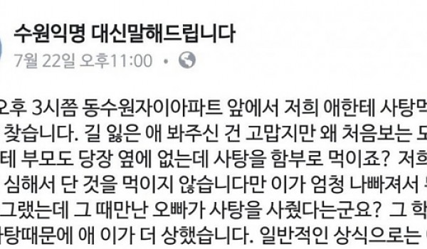 저희 애한테 사탕 먹인 학생 자수하세요 경찰에 신고합니다 (+후기)