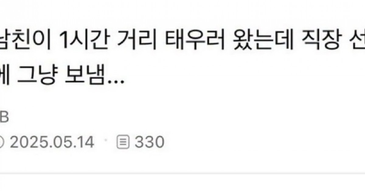 남친이 1시간 거리 태우러 왔는데 직장 선배 때문에 그냥 보냄