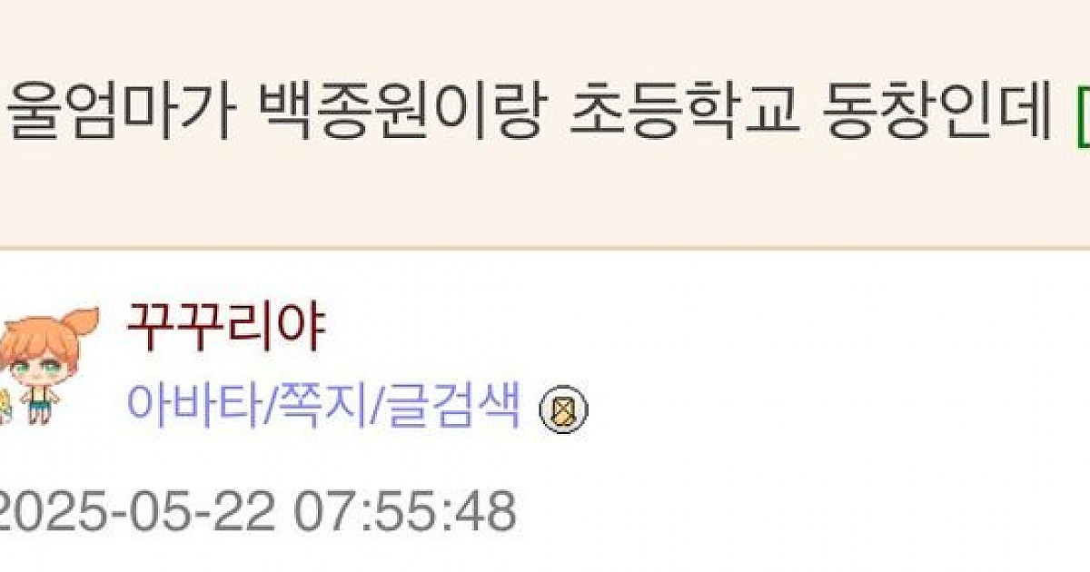 울엄마 백종원이랑 초등학교 동창인데