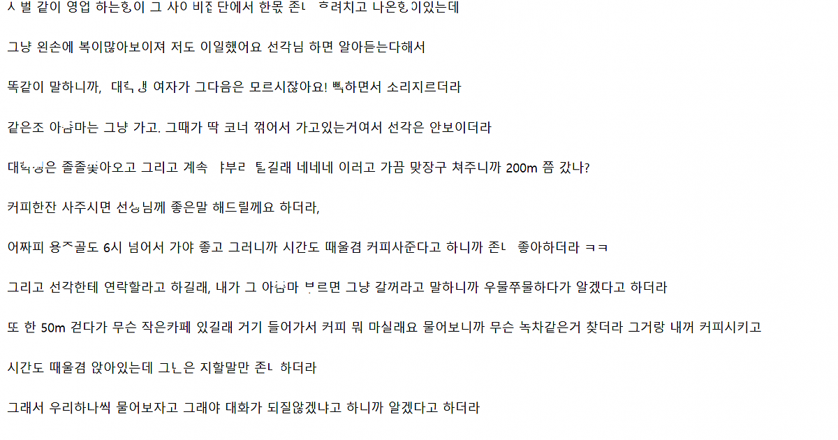 길에서 마주친 사ㅇ비녀 역으로 ㄲ셔서 ㅁㅌ가니 대ㅈ더라