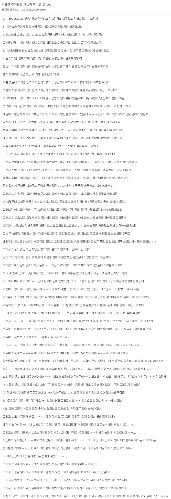 노량진 감자탕집 아ㅈ마한테 ㄱ같이 ㅁ혔다
