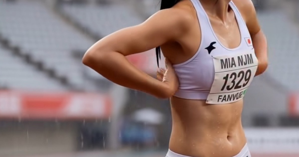 비 오는날 흰 육상복 입어 선명하게 다 보여줘버린 일본 미녀 육상선수(+고화질 영상)