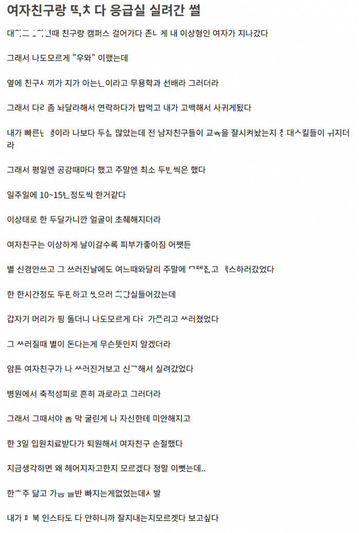 여친이랑 ㅁㅌ가서 ㄸ치다가 응급실에 실려감