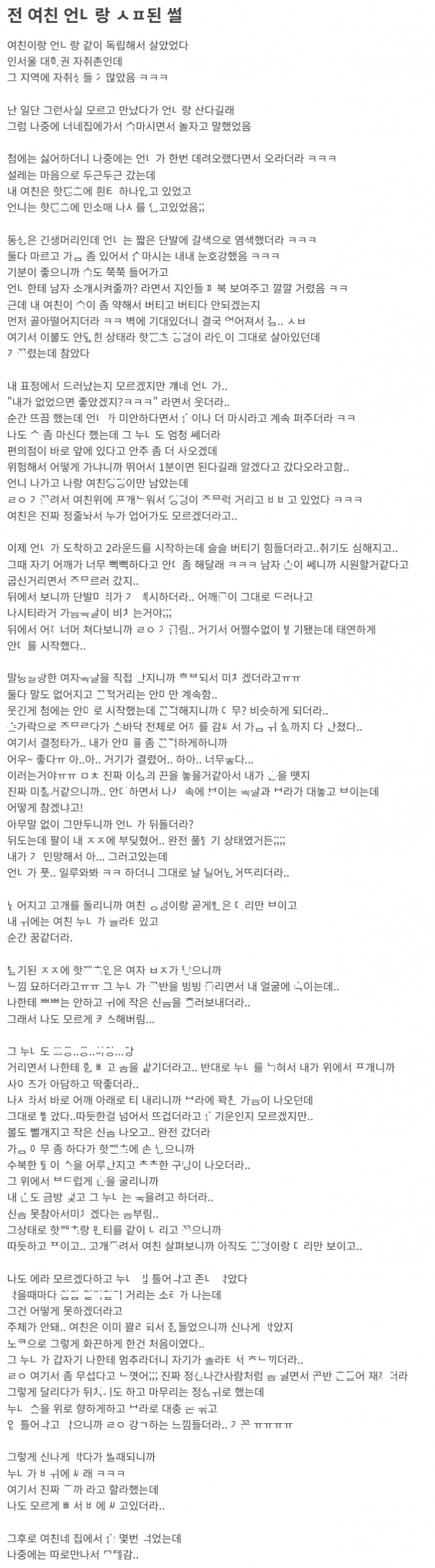 전여친의 언ㄴ랑 ㅅㅅ 파ㅌ너 된 이야기