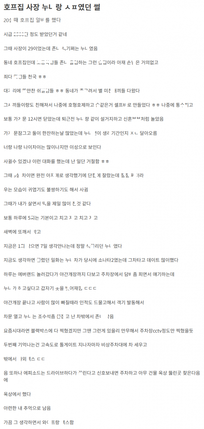 호프집 사장 눈나와 가게 문 닫고 안에서 있었던 썰