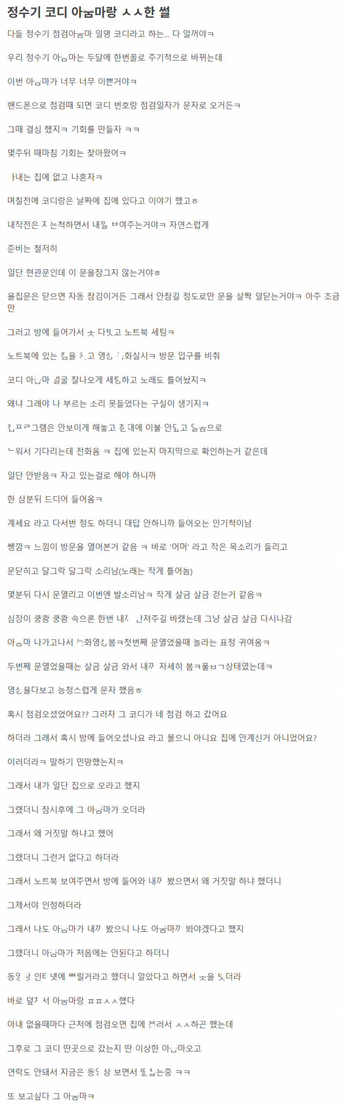 정수기 점검해주는 코디 아ㅈ마 왔을때 덥ㅊ버린 이야기