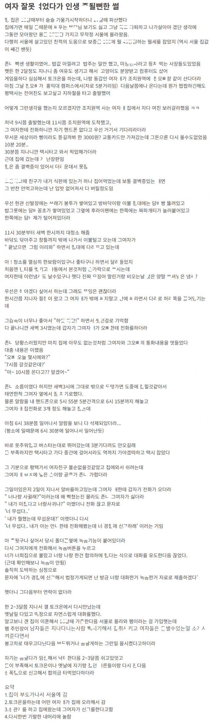 토크온으로 알게된 ㄱ레를 잘못 ㅁ었다가 ㅈ될뻔한 썰