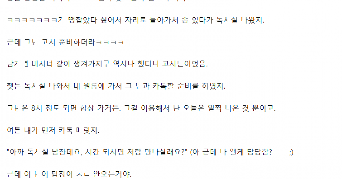 독ㅅ실서 매일 보던 암ㅋㄴ 조ㄱ 정ㅂ한 이야기