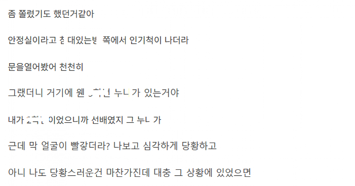 보ㄱ실서 여선배ㄴㄴ한테 ㅈㅆ도 하고 ㅇ다떼인 이야기
