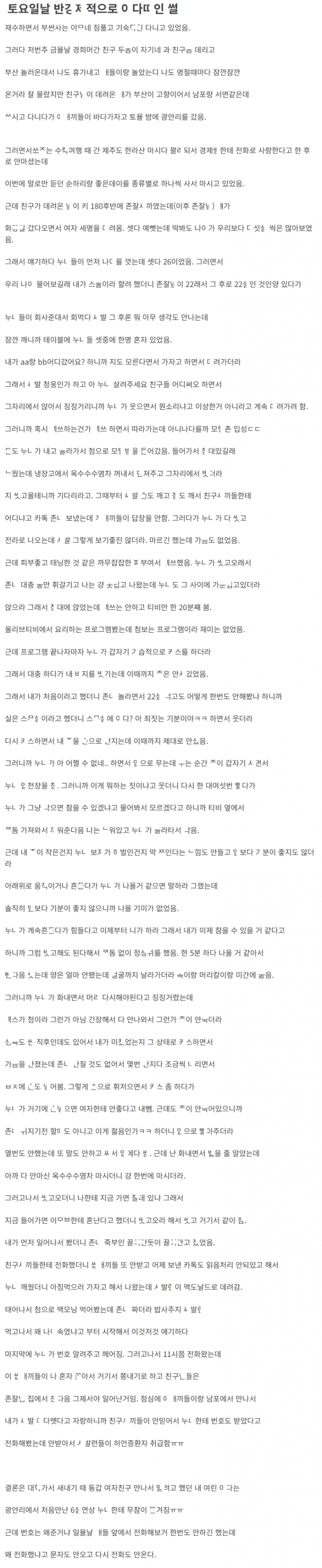 광안리 갔다가 연상녀에게 ㅇ다떼이고 ㅁ버 ㄷ한 이야기