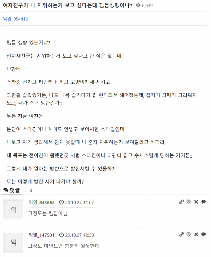 여친이 나 ㅈ위하는거 보고 싶다는데