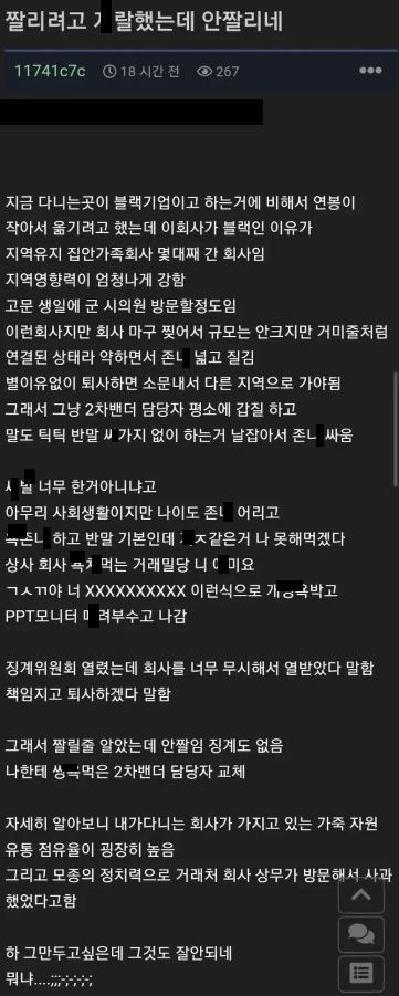 회사에서 짤리려고 거래처한테 ㅈㄹ 했는데 안 짤리네