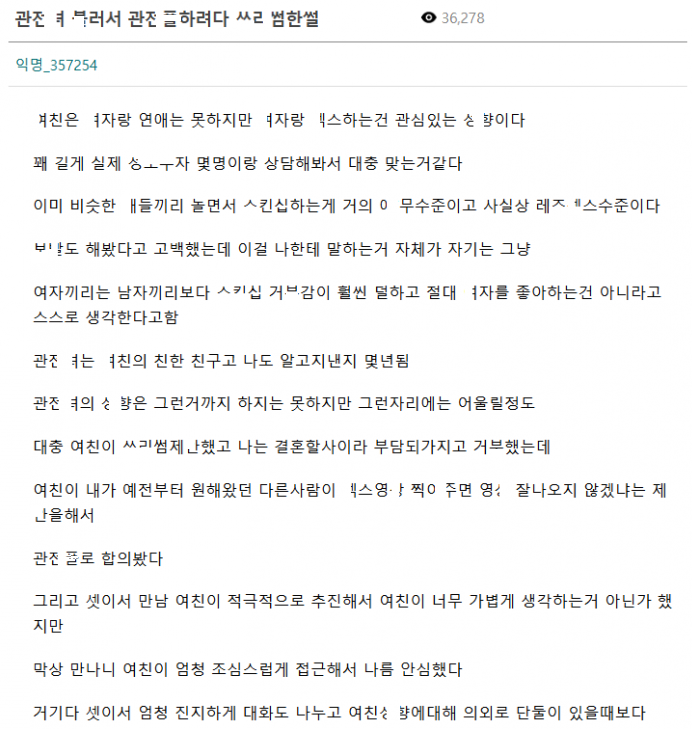 관ㅈ녀 ㅂ러서 관ㅈ플 하려다가 셋이 쓰ㄹㅆ한 이야기