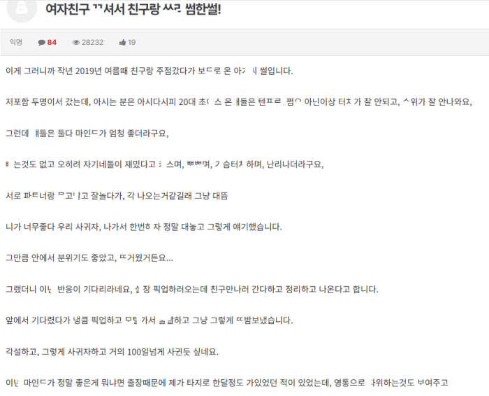 업ㅅ녀 여친 ㄲ셔서 친구랑 ㅆㄹ썸한 썰