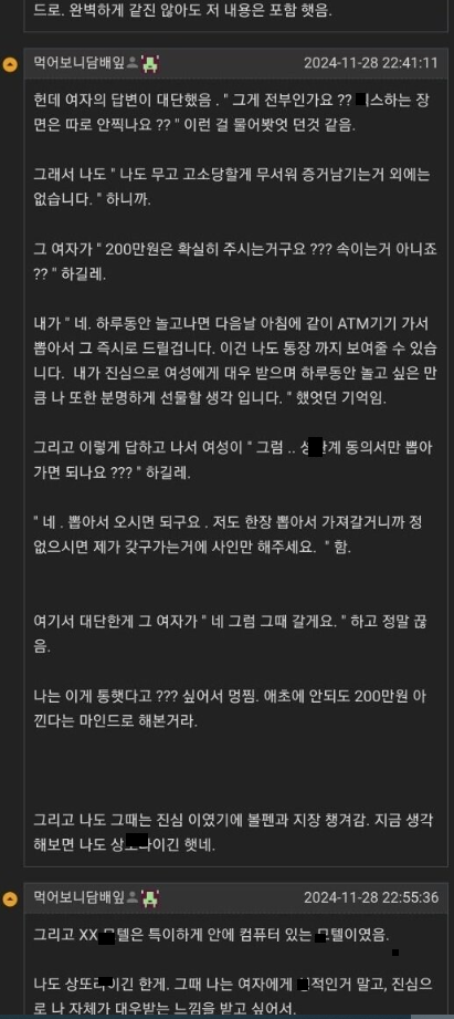200으로 갑ㅈ하며 여자랑 원ㄴ잇 한 이야기