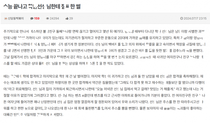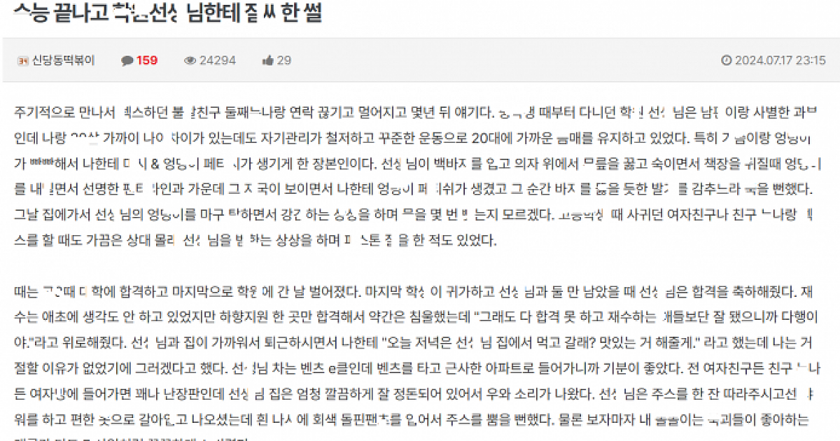 학ㅇ여선ㅅ님집서 선ㅅ님한테 노ㅋ ㅈ싸한 이야기