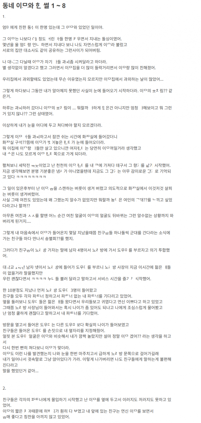 동네 이ㅁ ㅇ들 과오i해주다가 ㄲ려서 동네 이ㅁ ㄸㅁ고 ㅅㅅ한 썰
