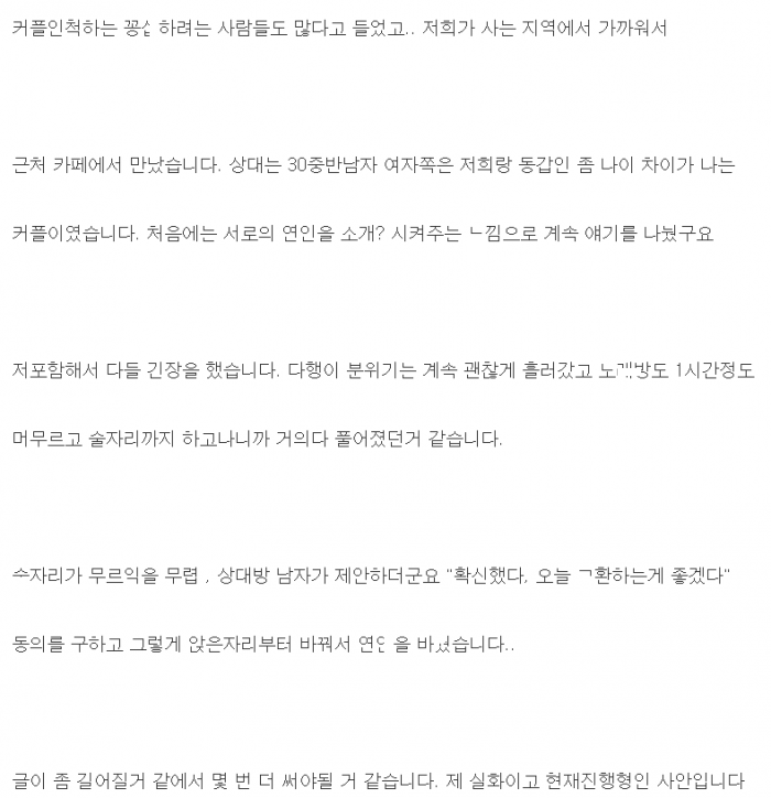 서로의 애ㅇ을 ㄱ환해서 만나본 남자
