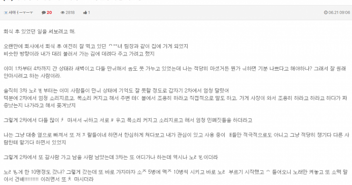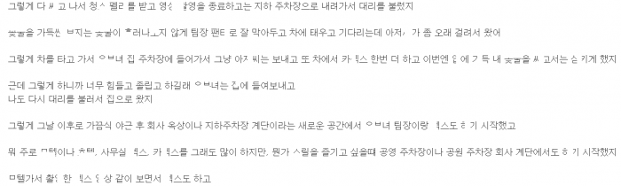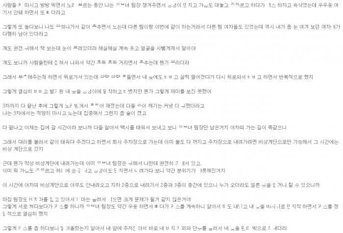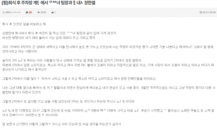 회식 후 주차장 계단서 유ㅂ녀 팀장 ㅈ내ㅅ정한 썰