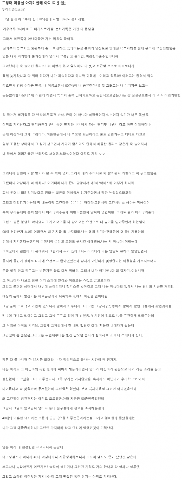 ㄱ딩때 미용실 아ㅈㅁ한테 ㅇ다 ㄸ인 썰